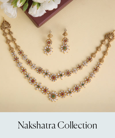 Necklace sets are a hallmark jewellery of Tarinika – crafted meticulously in India and delivered worldwide. You can buy long necklace set designs, antique necklace sets, nakshatra necklace sets, kundan necklace sets, and more – all online. Tarinika offers bestselling necklace sets for Indians that you’ll not find anywhere else. The necklace set designs are truly unique reflecting a passion for beautiful Indian jewellery.