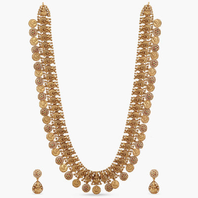 However, if you are looking for something traditional and beautiful, we also have hundreds of long necklaces set designs to choose from. Long necklace sets are popular among women right now because they are beautiful, versatile, and queenly. Buying a long necklace set online at Tarinika is very easy. Just choose your long necklace set design and place an order – that's it.