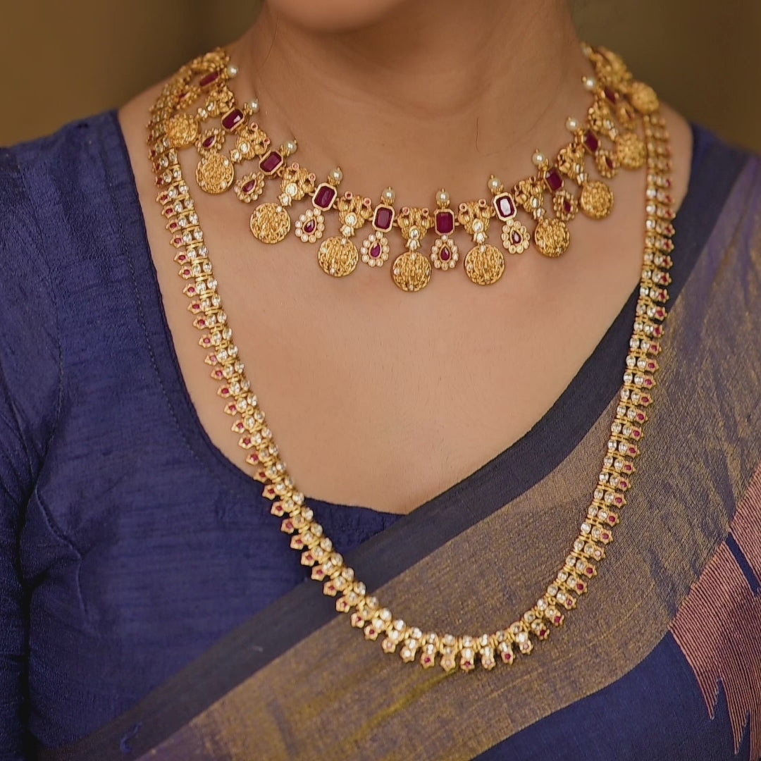 However, if you are looking for something traditional and beautiful, we also have hundreds of long necklaces set designs to choose from. Long necklace sets are popular among women right now because they are beautiful, versatile, and queenly. Buying a long necklace set online at Tarinika is very easy. Just choose your long necklace set design and place an order – that's it.