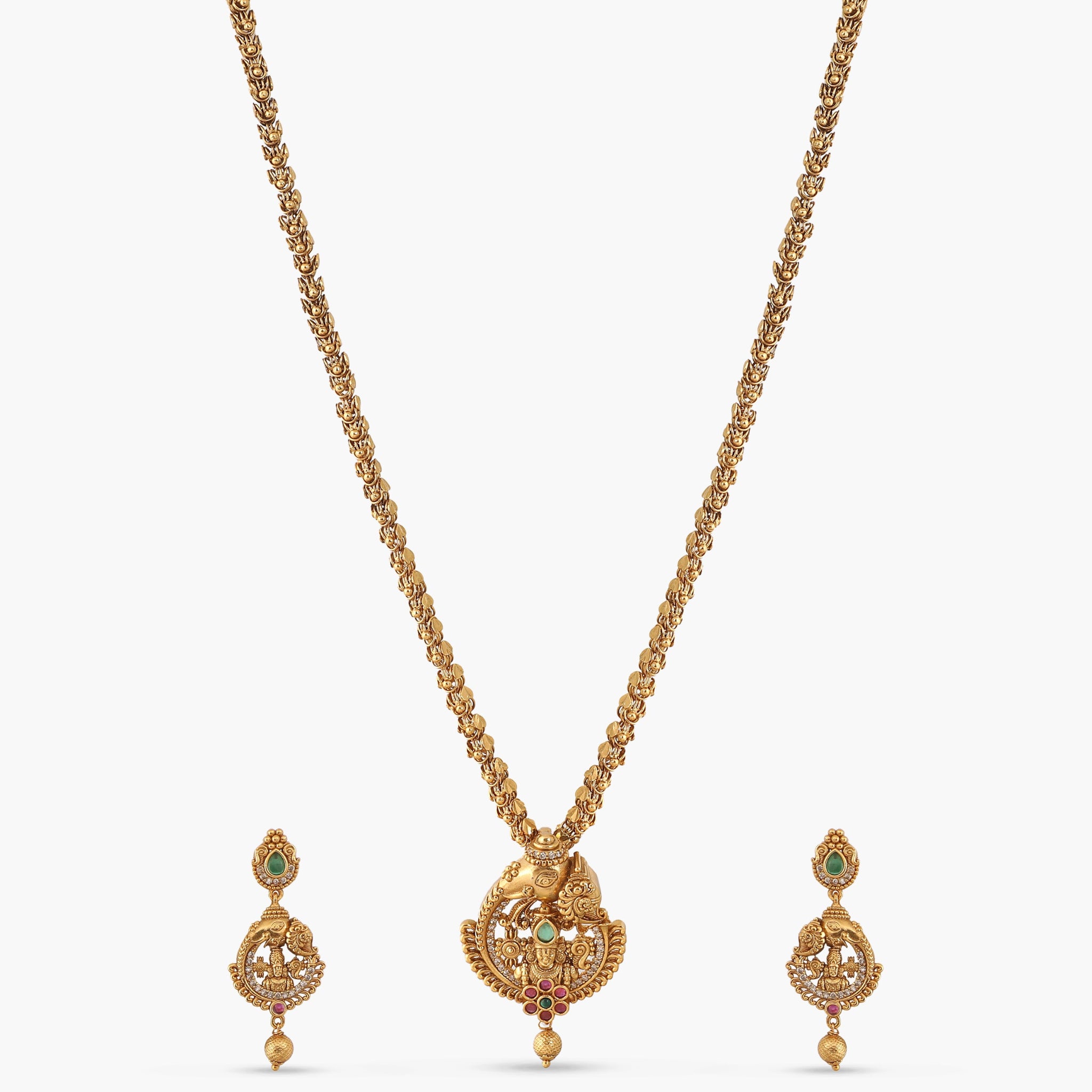 However, if you are looking for something traditional and beautiful, we also have hundreds of long necklaces set designs to choose from. Long necklace sets are popular among women right now because they are beautiful, versatile, and queenly. Buying a long necklace set online at Tarinika is very easy. Just choose your long necklace set design and place an order – that's it.