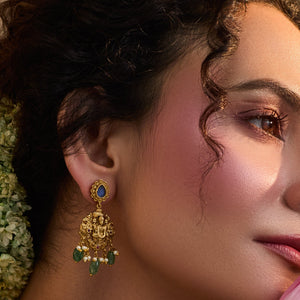 The Maira antique drop earrings showcase exquisite craftsmanship, finished in antique gold plating. Designed to bring a touch of timeless elegance and traditional charm to any ensemble.