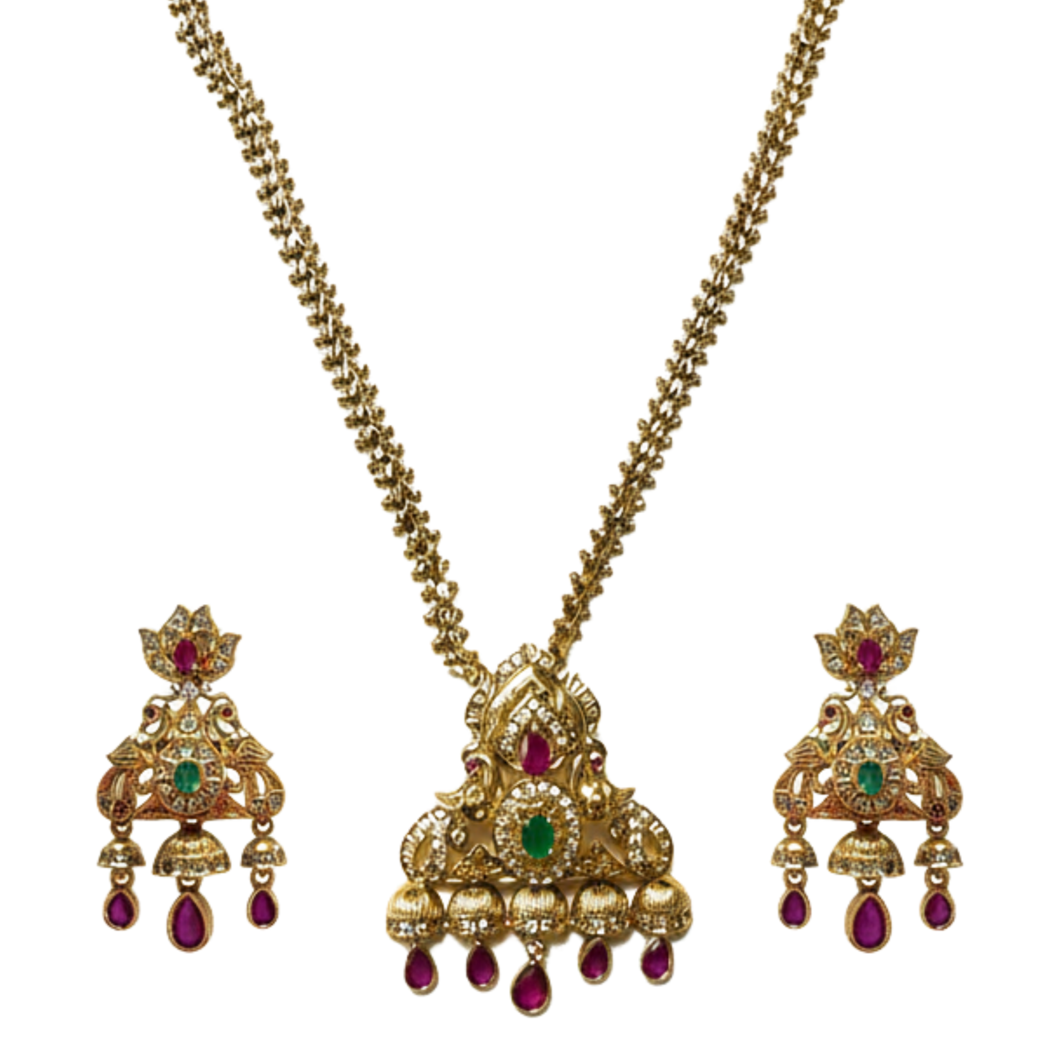 However, if you are looking for something traditional and beautiful, we also have hundreds of long necklaces set designs to choose from. Long necklace sets are popular among women right now because they are beautiful, versatile, and queenly. Buying a long necklace set online at Tarinika is very easy. Just choose your long necklace set design and place an order – that's it.
