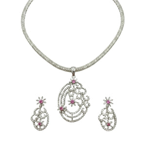 A delicate floral pendant with soft hues and red CZ accents. Easy to style with sarees or dresses.