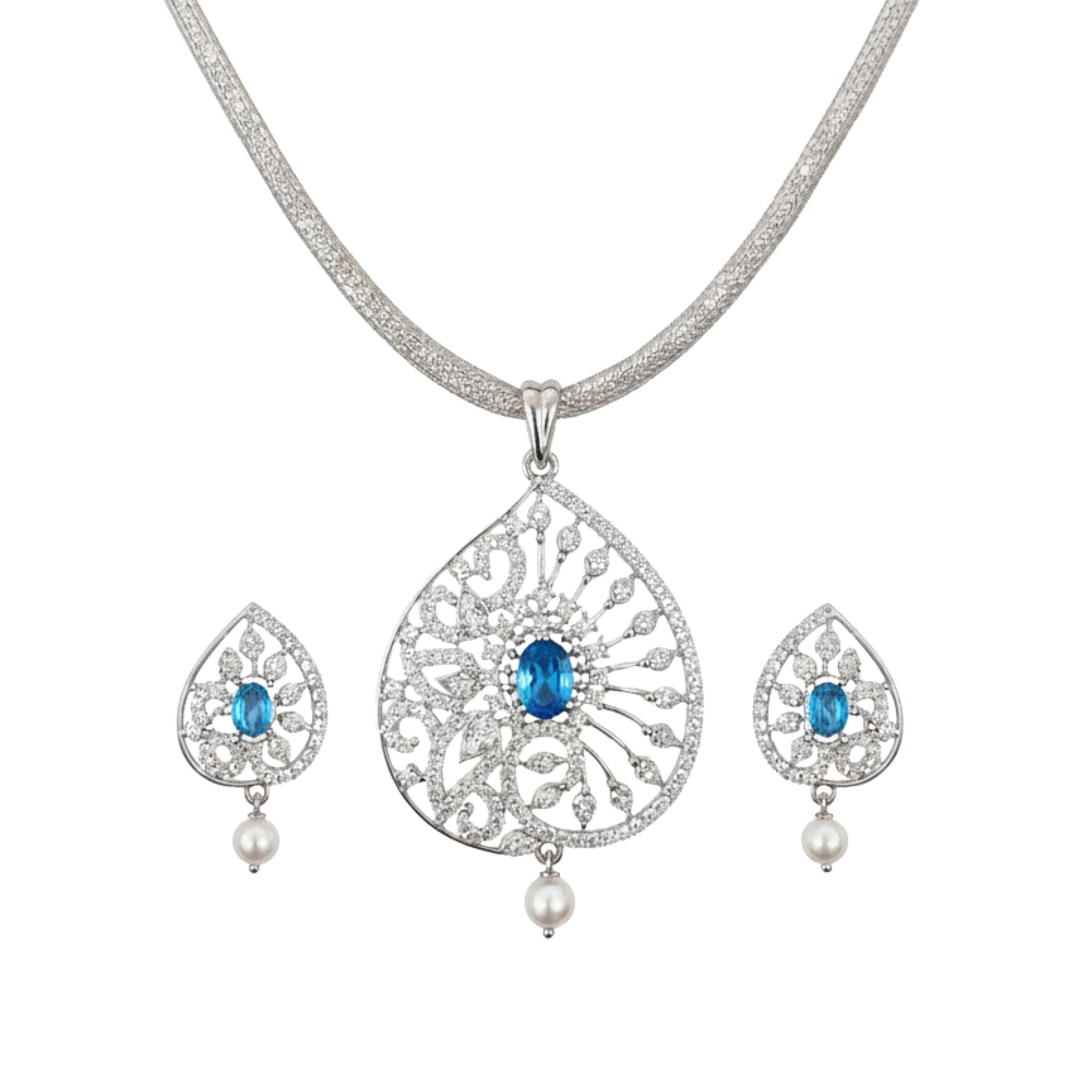 Inspired by nature, this leaf-shaped pendant adds a gentle pop of color with blue cz at the centre. Perfect for everyday wear or light festive styling.