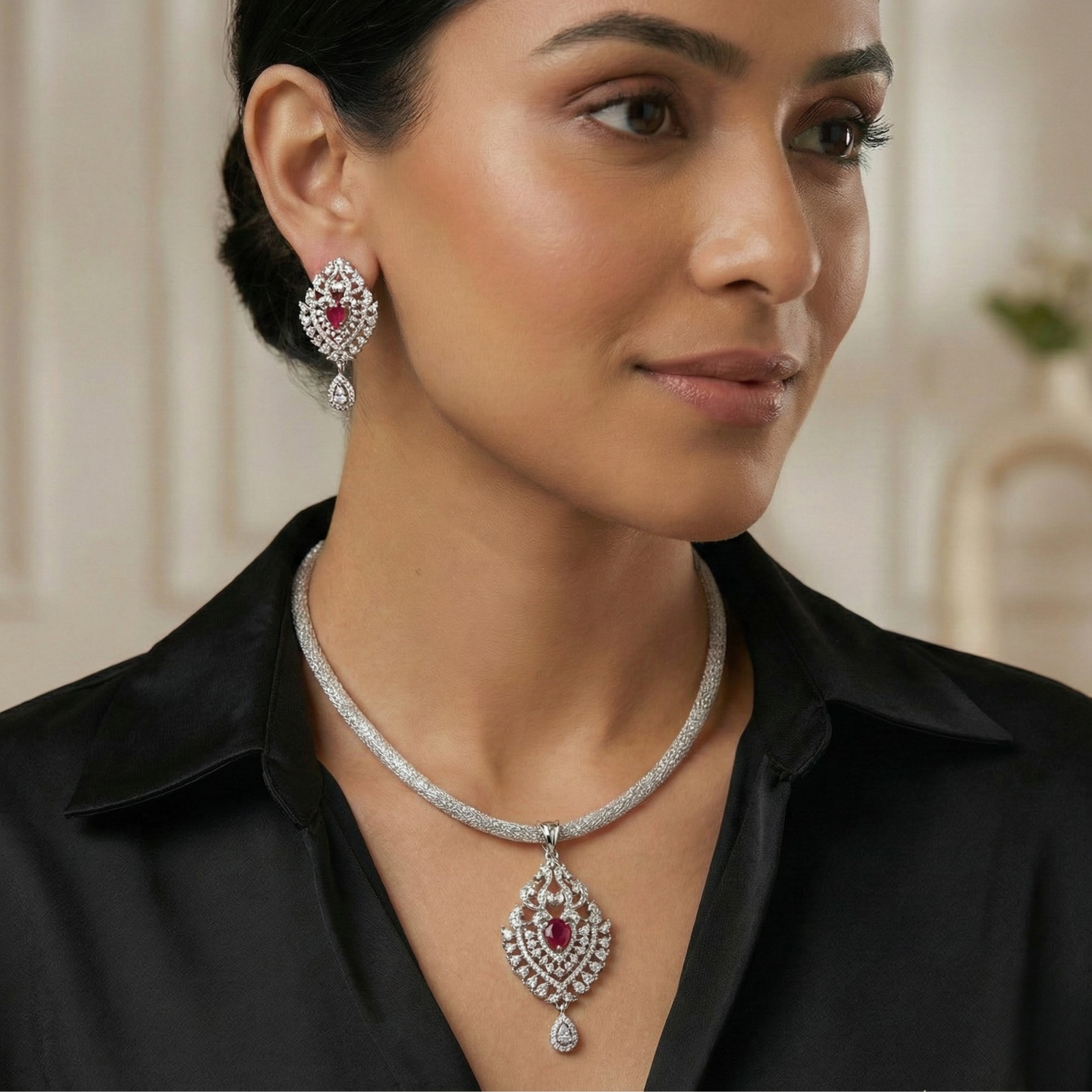 Aira Nakshatra Red CZ Pendant Set Sold Out