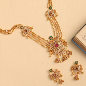 However, if you are looking for something traditional and beautiful, we also have hundreds of long necklaces set designs to choose from. Long necklace sets are popular among women right now because they are beautiful, versatile, and queenly. Buying a long necklace set online at Tarinika is very easy. Just choose your long necklace set design and place an order – that's it.