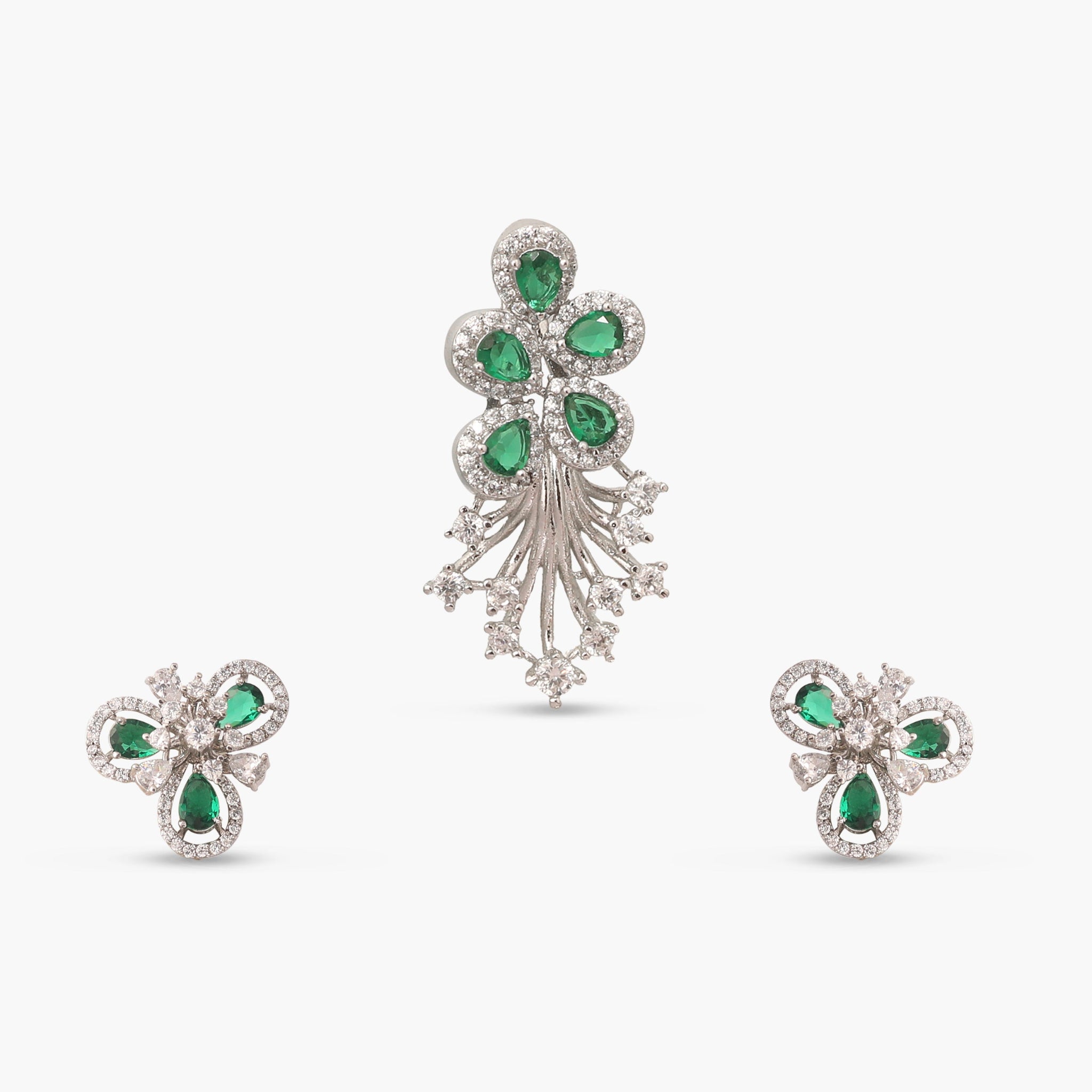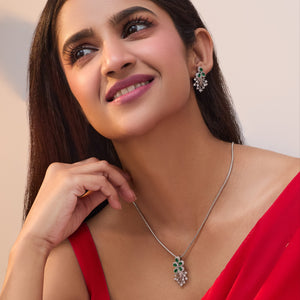 Inspired by the elegance of a peacock feather, this Nakshatra CZ pendant set with a green accent stone is a unique piece for those who love understated artistry.
