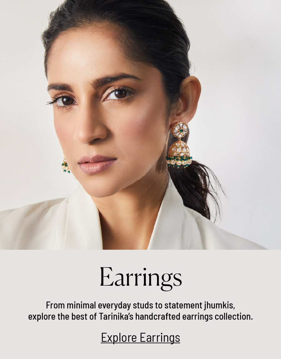 From traditional earring designs that serve the Indian style well, to the modern, chic, and trendy designs of earrings best suited for the modern Indian woman –Tarinika jewellery offers a wide-range of jewellery to choose from. You can buy antique earring designs or kundan earrings, or you can also buy an earring with a necklace set for a classic look. There’s more to earrings on Tarinika than anywhere else.
