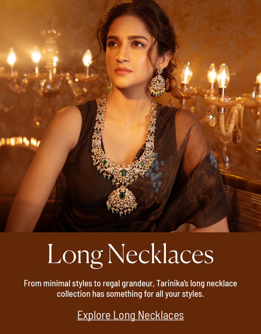 However, if you are looking for something traditional and beautiful, we also have hundreds of long necklaces set designs to choose from. Long necklace sets are popular among women right now because they are beautiful, versatile, and queenly. Buying a long necklace set online at Tarinika is very easy. Just choose your long necklace set design and place an order – that's it.