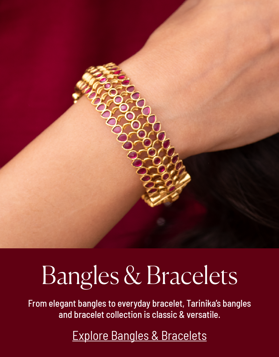 Tarinika is proud to have a wide range of beautiful bangle jewellery that perfectly fits. If you are looking for bangles for the best price to buy online, you have come to the right place. At Tarinika, what you pay is always worth it specifically because the jewellery is crafted with utmost love and care. In this case, Bangles at Tarinika are uniquely designed, expertly crafted, and are something our customers take a lot of pride in. No matter the occasion, buy beautiful bangles online at Tarinika.