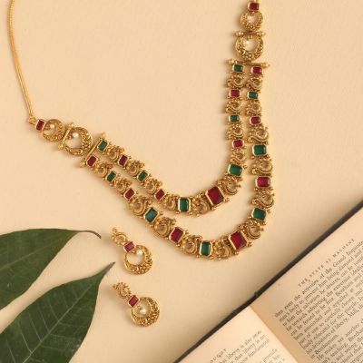 However, if you are looking for something traditional and beautiful, we also have hundreds of long necklaces set designs to choose from. Long necklace sets are popular among women right now because they are beautiful, versatile, and queenly. Buying a long necklace set online at Tarinika is very easy. Just choose your long necklace set design and place an order – that's it.